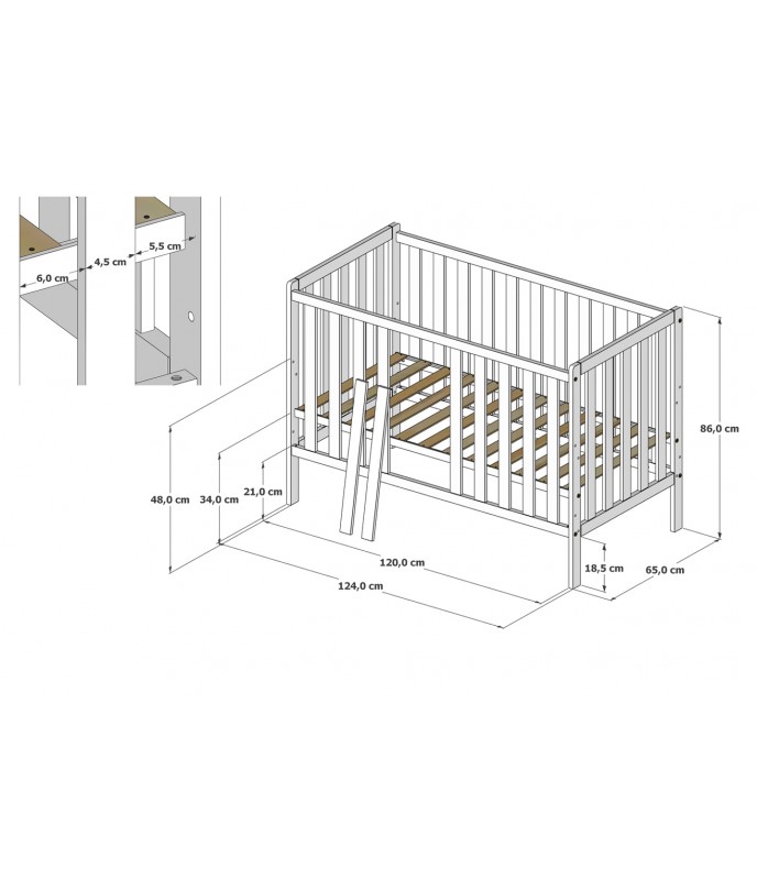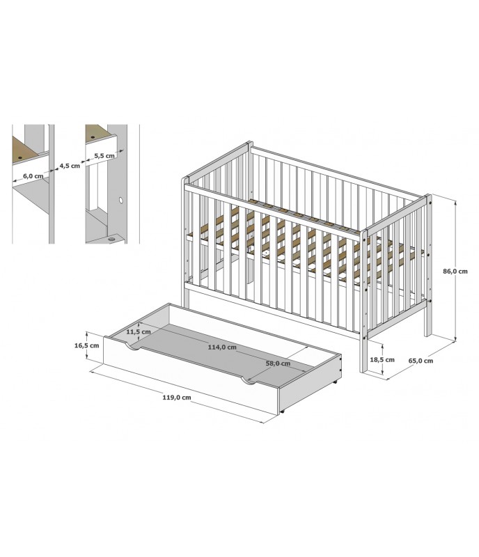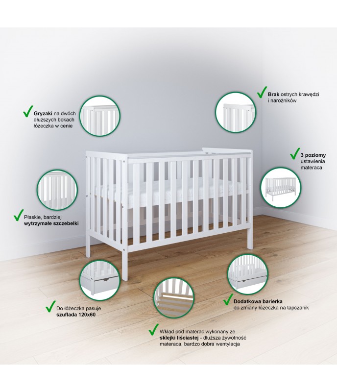 Baby cot Bambi 2in1 with drawer 60x120cm white