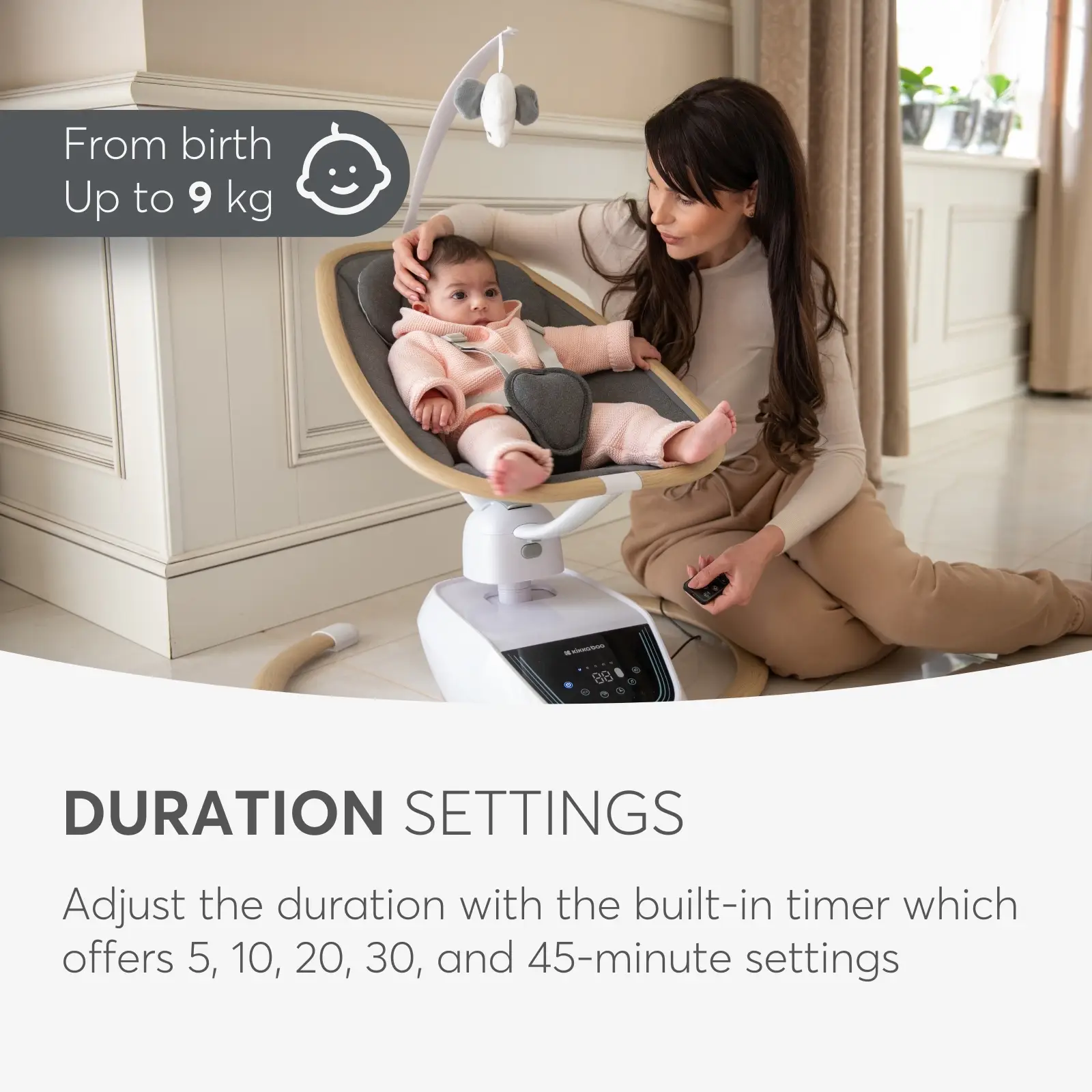 Designed to be used from birth up to a weight of 9 kg, this swing offers a cozy and secure environment for your newborn, making it a perfect choice for early infant care.