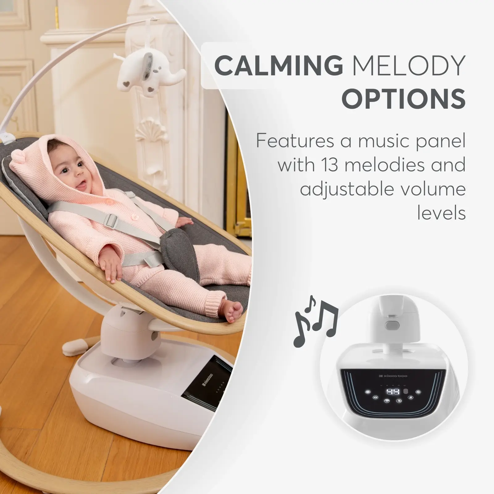 - Interactive Features – Comes equipped with a toy bar, music panel with 13 melodies, and adjustable volume levels to create a soothing atmosphere.