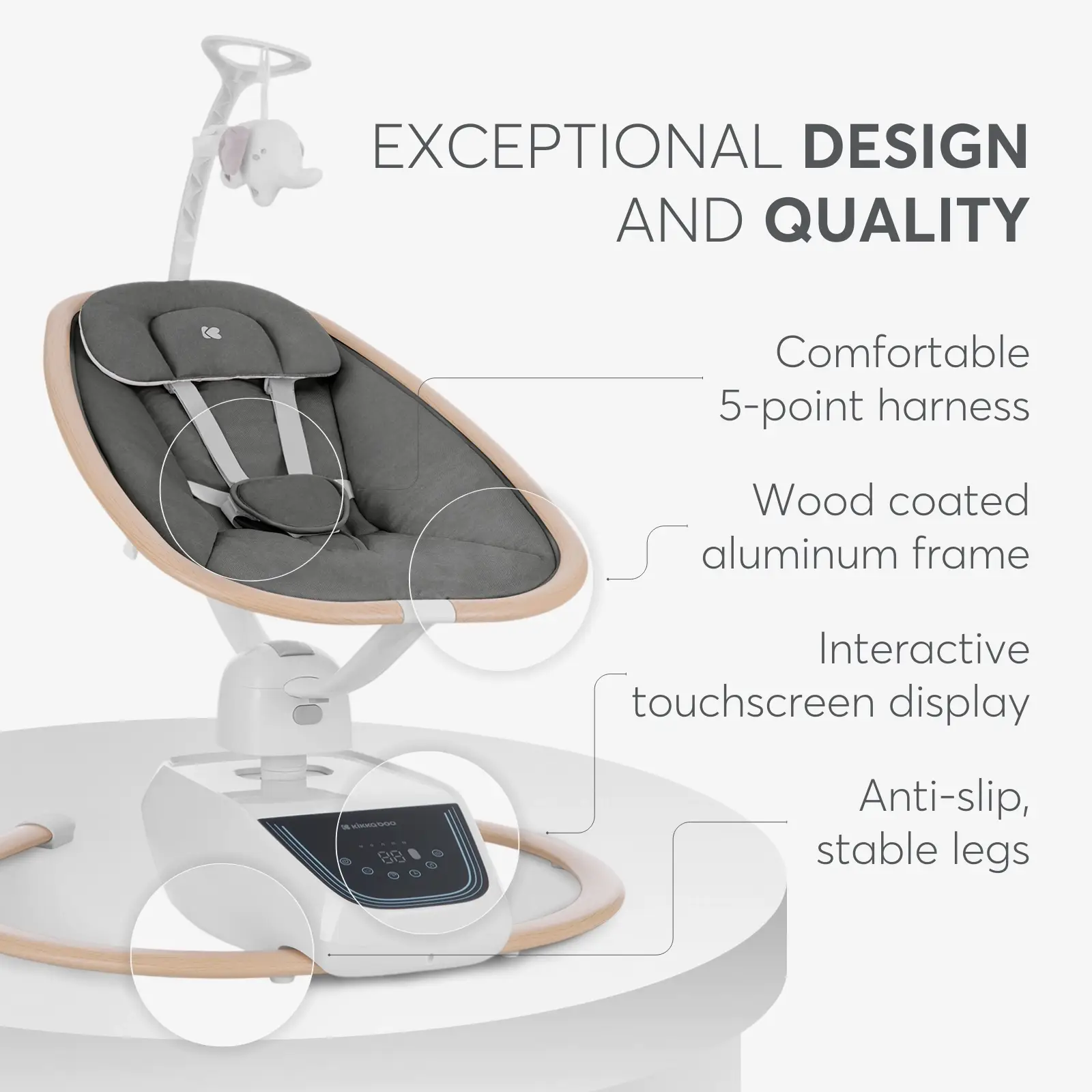 - Easy to use – The baby swing includes a touchscreen display for easy settings adjustments, a timer with 5, 10, 20, 30 and 45 minutes, an AC adapter and a remote control.