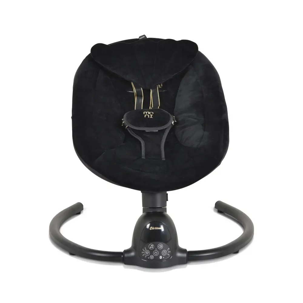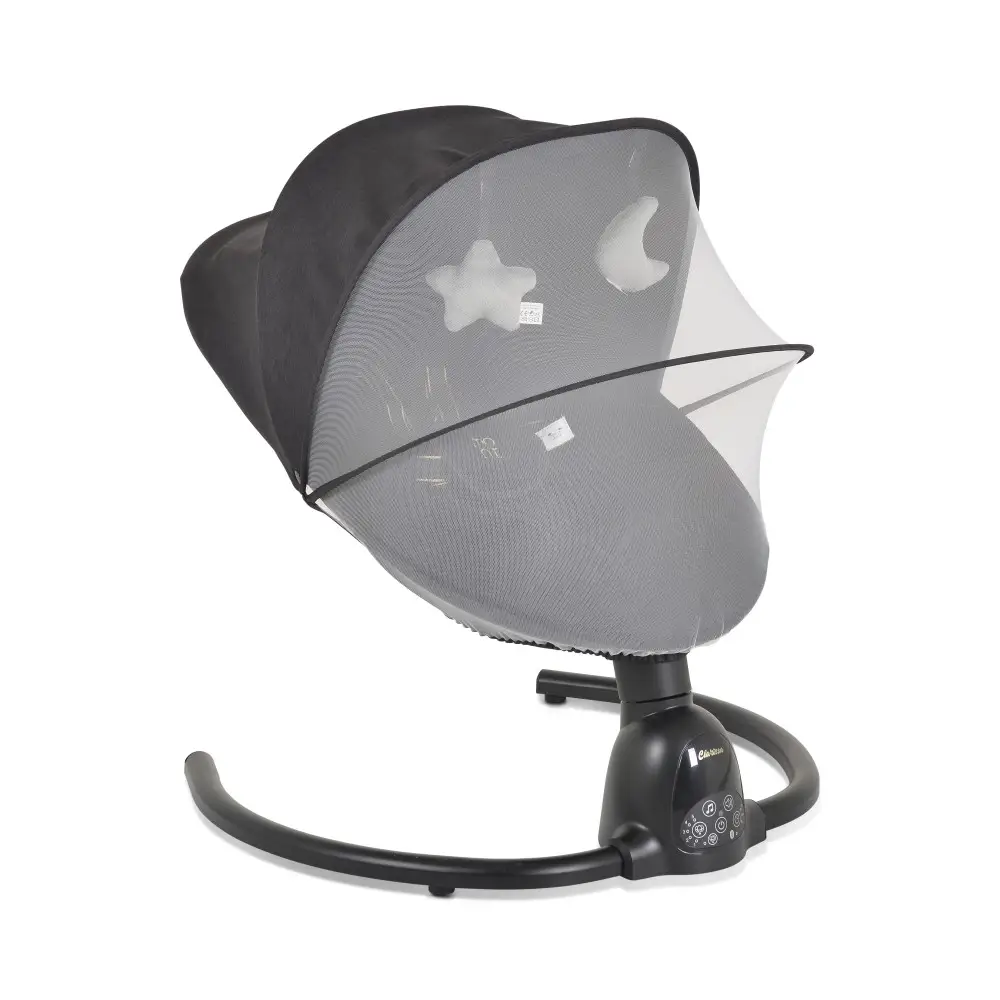 The baby swing Clarissa has a stylish and clean design, suitable for any interior. There are 5 swing speeds to choose from. The swing has a built-in motion detector that can automatically activate the swing when the child moves. Using the Bluetooth function, you can play music of your choice in case you don`t want to take advantage of the available 10 melodies. The swing only works with an adapter with a cable length of 5m (included in the set). It can be controlled with the touch panel of the mechanism or with a remote control. Optionally, you can use the timer with an option of 8, 15 and 30 minutes. By selecting any of these options, the swing stops swinging after the specified time interval. The 5-point seat belt will ensure the safety of the child. The product features canopy with mosquito net and 2 plush toys. For the baby`s comfort, the set also includes a soft pillow. The upholstery can be easily removed for washing. The item can be disassembled quickly and easily by an adult with one movement. In addition, its extremely light construction makes it convenient to carry to another room or on the road.