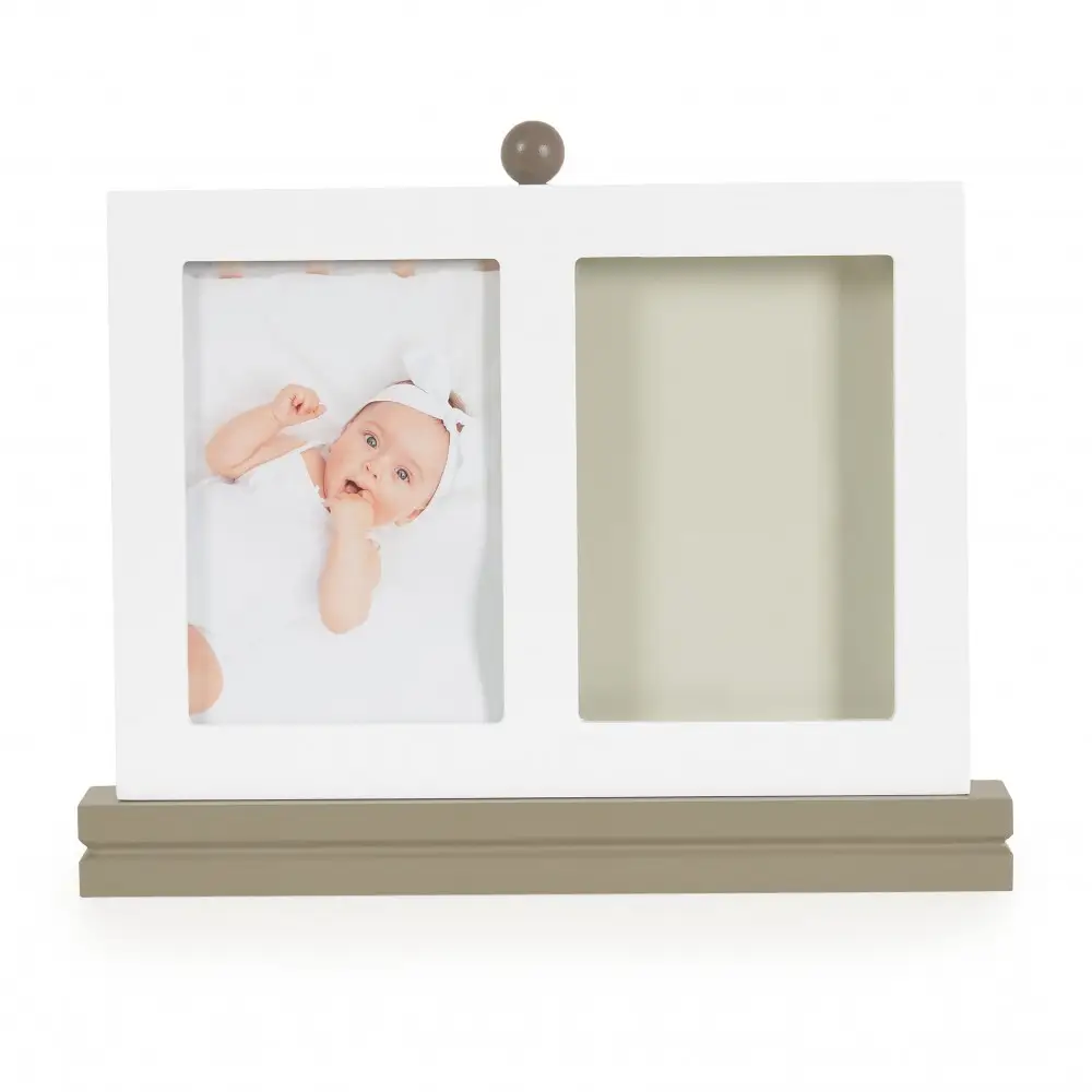 Hand/footprint with photo frame My Print will preserve an exciting memory that will remind you of your child`s first moments. This elegant frame, with a delicate design, fits perfectly into any interior, adding warmth and emotion to your home. Made of 100% child-safe materials. With its compact dimensions, it is ideal for placing on a desk, shelf or cabinet in your home or office. The kit includes everything you need to easily and quickly create an impression of your baby`s hand or foot – no baking required. It is suitable for children from 0+ months, providing the opportunity to seal those priceless moments from the earliest childhood.