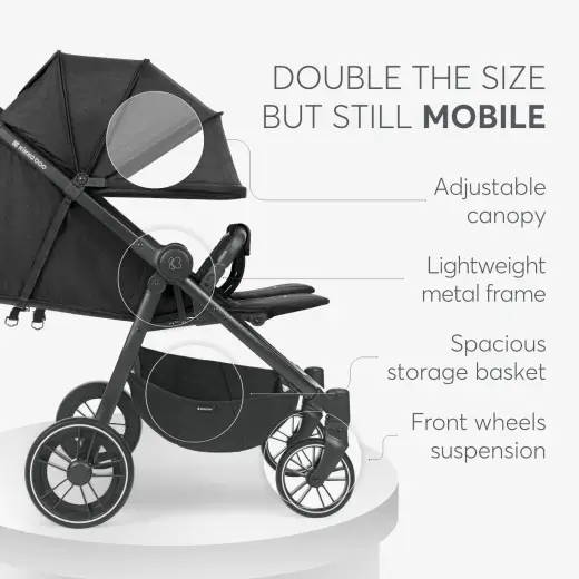 Each seat in HAPPY 2 can accommodate a child up to 15 kg, making it perfect for twins or siblings close in age, ensuring a comfortable ride for each child.