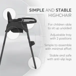 Built with anti-slip legs, this highchair maintains stability on any floor surface, ensuring it stays in place and reduces the risk of slipping during use.