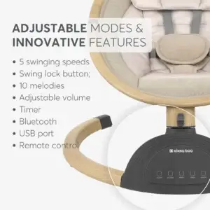 Enhanced with Bluetooth and a USB port, ASHLEE allows you to play personalized playlists or soothing sounds from your own devices. This swing is designed not only for baby’s comfort but also for parental ease, making it a valuable addition to any nursery.