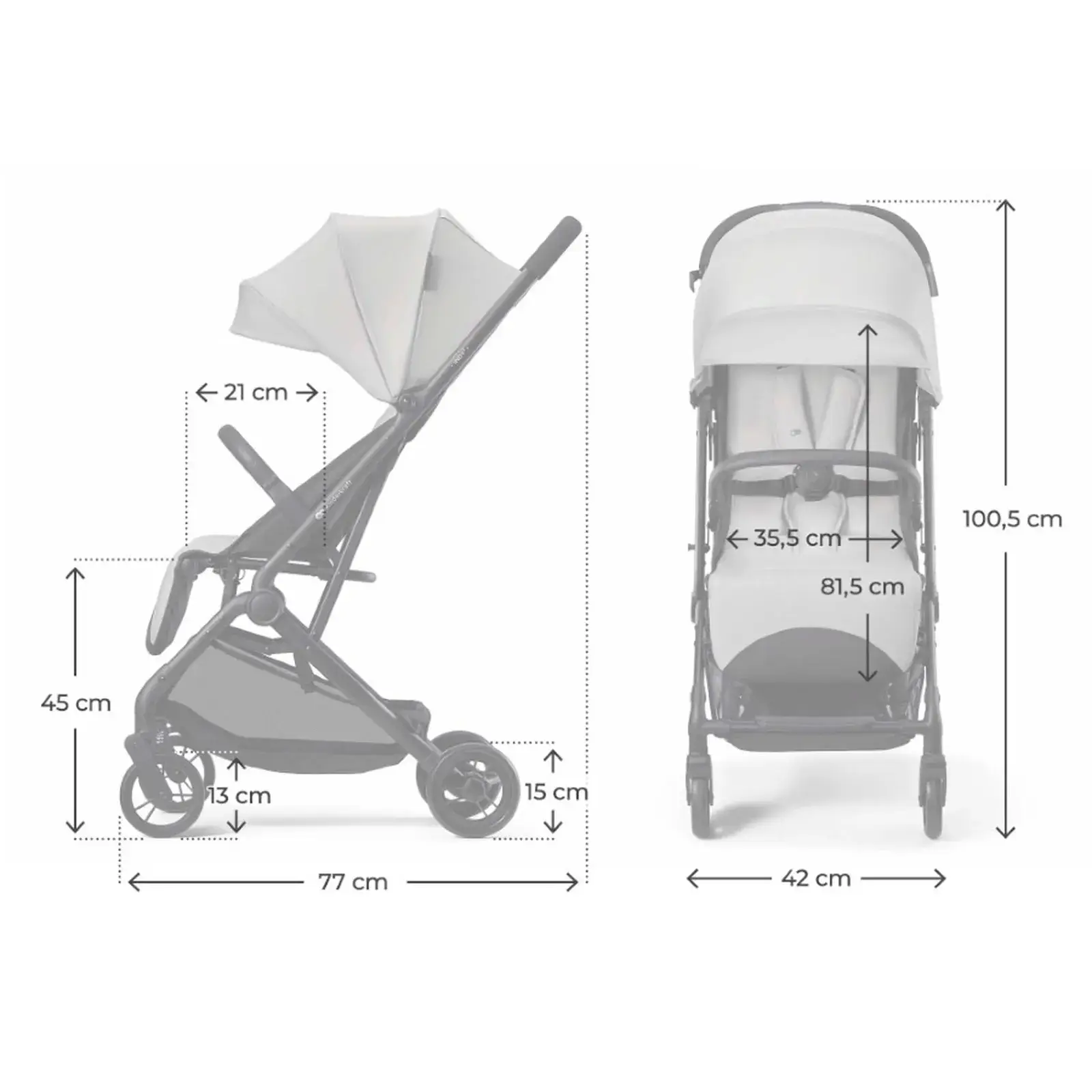 The Kinderkraft Indy 3 Urban Grey stroller folds in a snap, even with a child in one hand and a bag in the other. Its compact frame makes it easy to load into the trunk of your car, place in a corner of your apartment, or carry up the stairs. A practical solution for everyday use.
