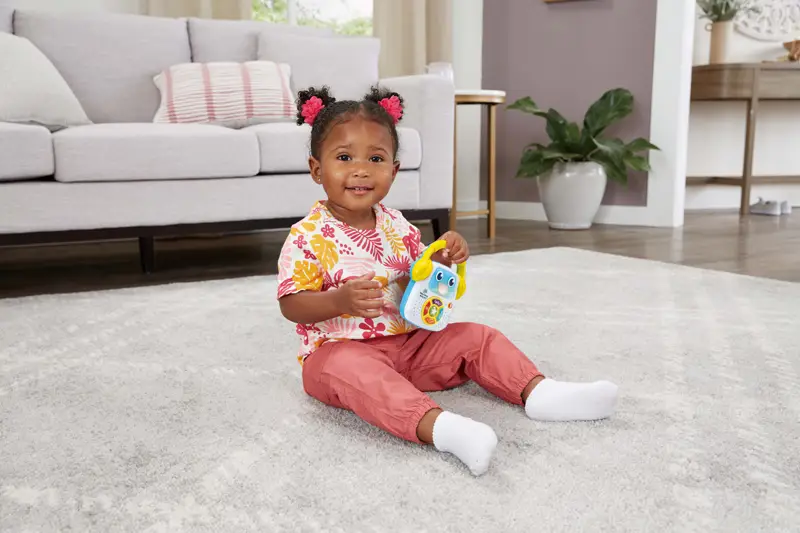 Learning jams play 10 upbeat songs to encourage movement and dancing whilst lyrics teach about days of the week, numbers and more. 10 familiar nursery rhymes play in Magical Melody mode. Activate popular Classical Melodies for quiet time. There is also a ten-second record feature, press the button and record babble or words and playback to help promote speech development. Transform the voice recordings into 4 fun robot voice effects for funny sounds.
