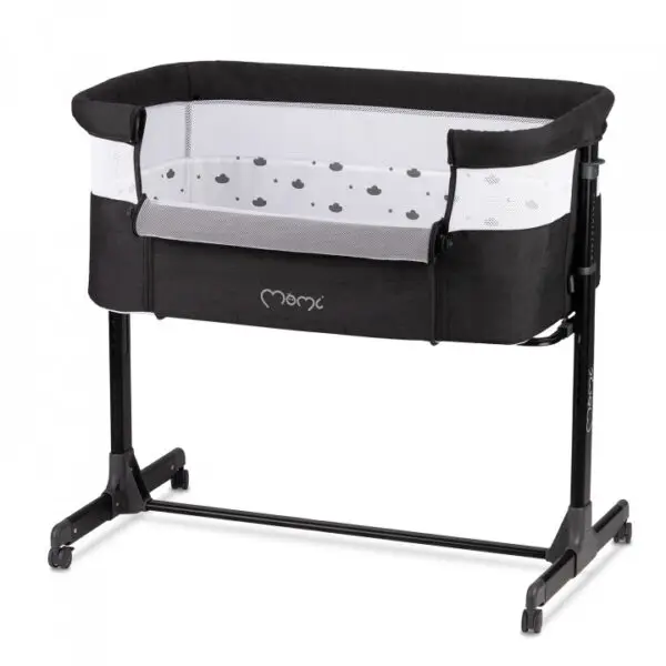 | The MoMi REVO 2-in-1 baby cot can serve as both a stand-alone baby cot and a bedside cot where your little one will feel safe and comfortable. | Keep your little one close to you with our adjustable-height baby cot that can be easily adapted to match the height of your bed. The MoMi REVO baby cot offers 6 levels of adjustment. | Zip off the side of the baby cot whenever you need more comfort and easy access to your little one. The baby cot is also equipped with a special strap to attach it to your bed, and a wheel lock to prevent uncontrolled movement. |