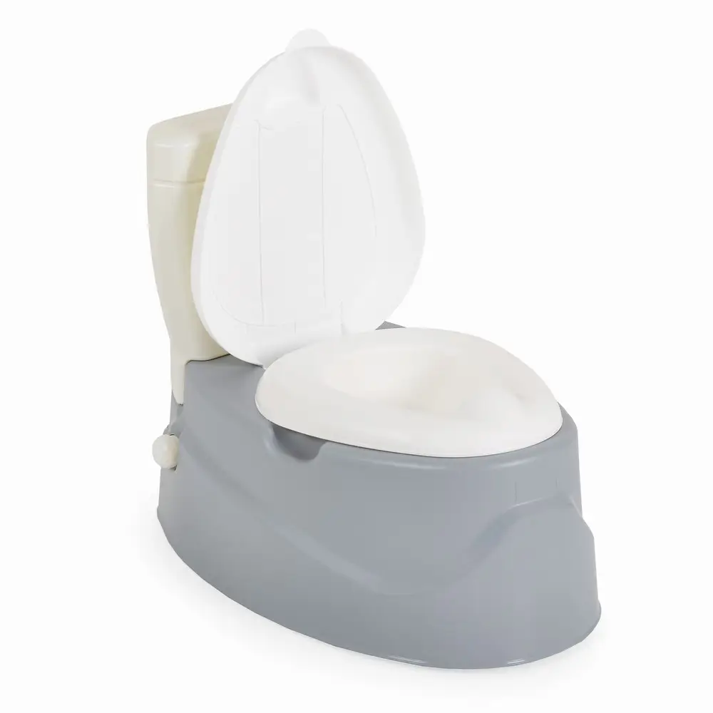 Maximum weight capacity: 25 kg. Musical function. Slip-resistant base. Removable container. Lid with opening and closing option. Comfortable seat with ergonomic design. Toilet paper holder. Made with child-safe paints and materials. Suitable for children over 18 months.
