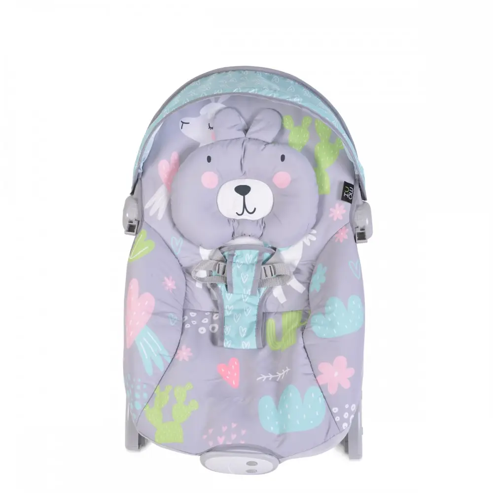 Suitable for children from age 0 months and above and up to when they start to try to sit up. 12 classic melodies with calming vibrations. 3 reclining positions of the backrest. Foldable kickstand. 3 removable hanging toys. 3-point safety belts. Soft pillow as head support for the child
