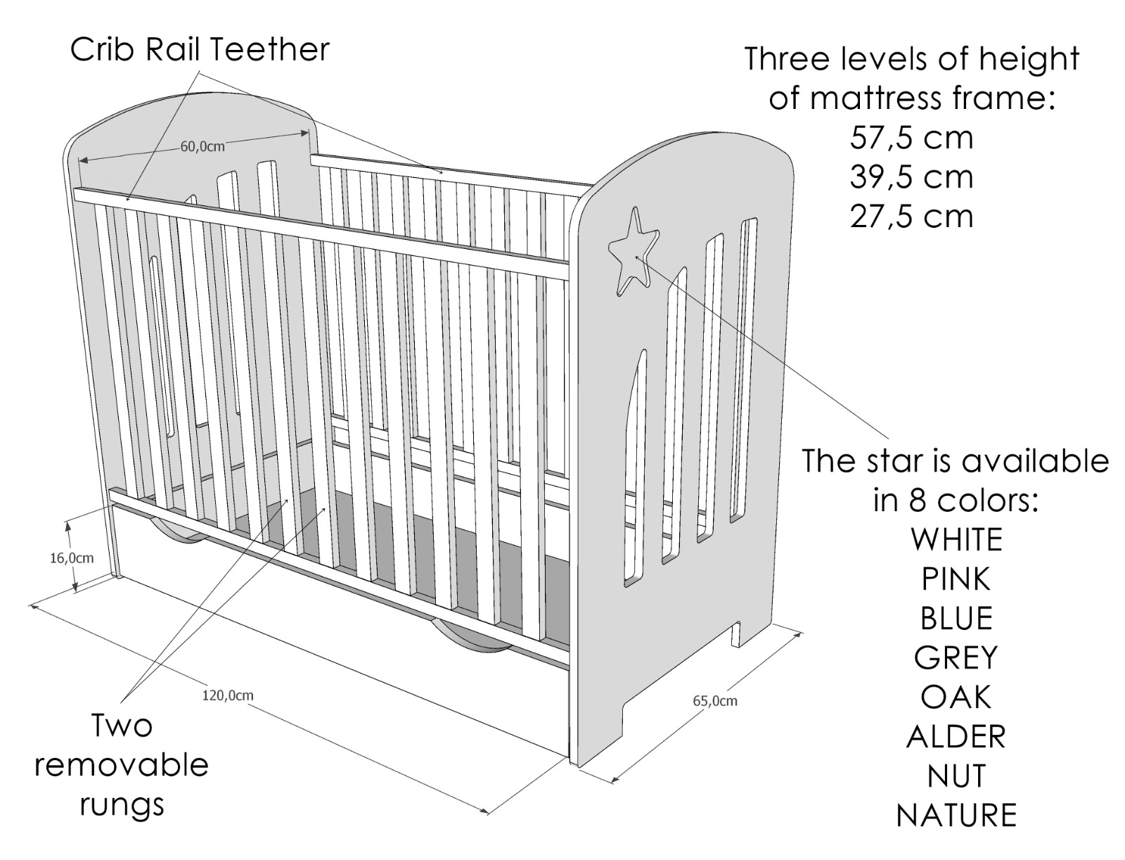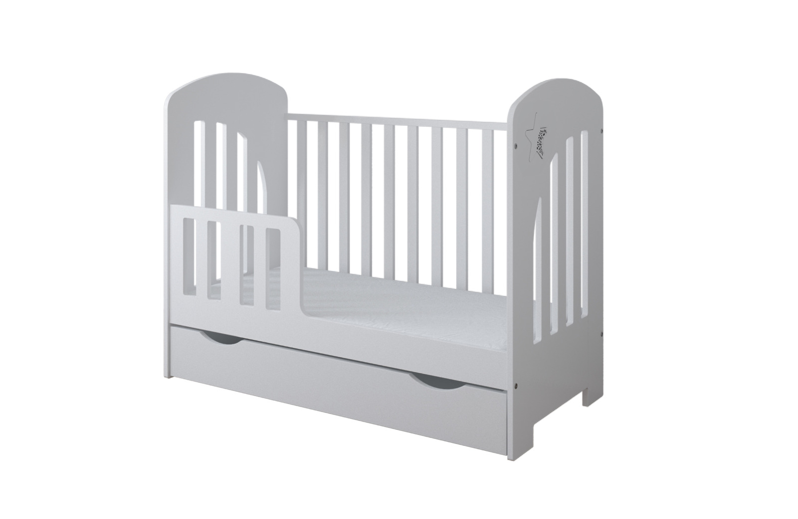 The STAR collection is designed to brighten up your little one’s room! With its delicate star decoration and practical cutouts in the drawer fronts, this collection combines modern design with ease of use. Available in white.